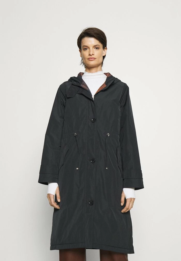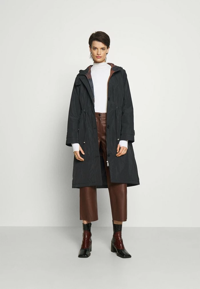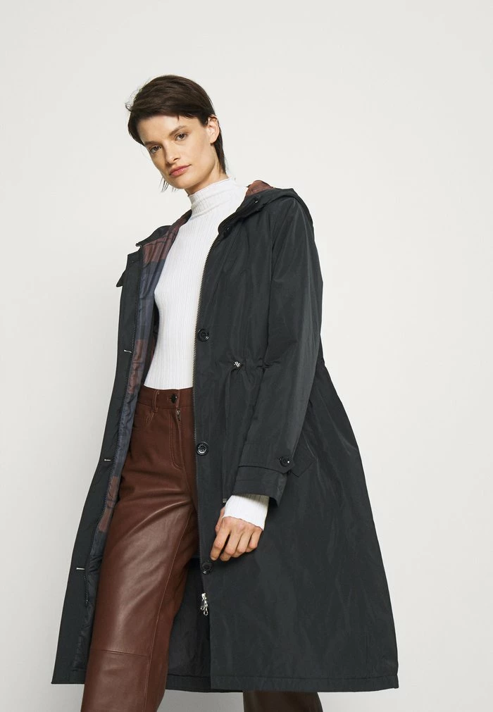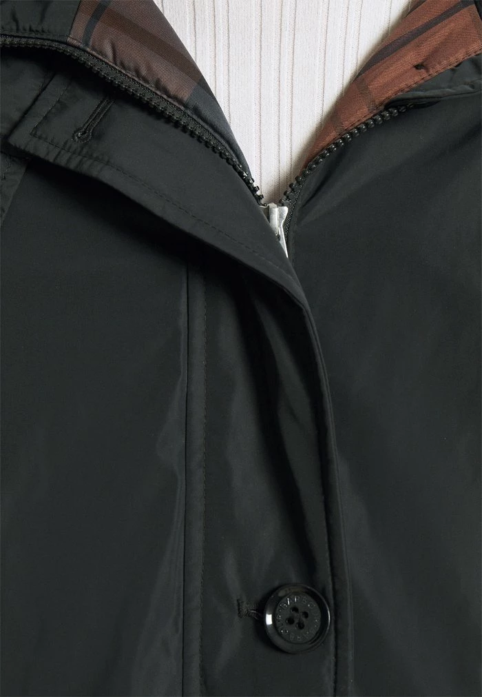 - Details: Button row, covered fastener, Two-way zipper